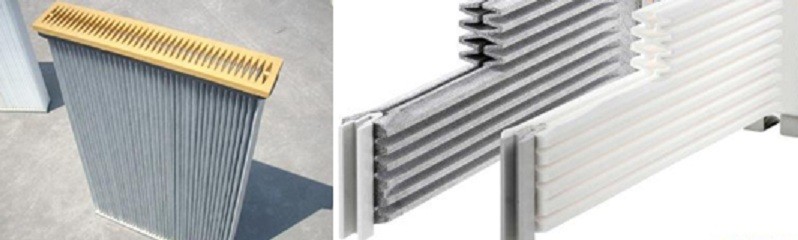 塑燒板的結(jié)構(gòu)形狀一般為長方形,過濾部位為波浪形板式結(jié)構(gòu),設(shè)計成波浪形是為加大其除塵過濾有效面積。